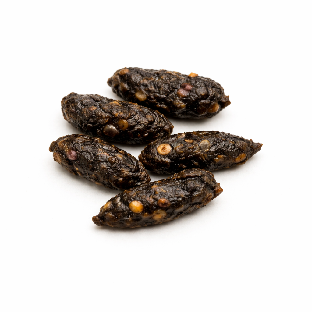 • 形:比較的大きめ。時期により種や果実片が混ざることも(食性で変化)