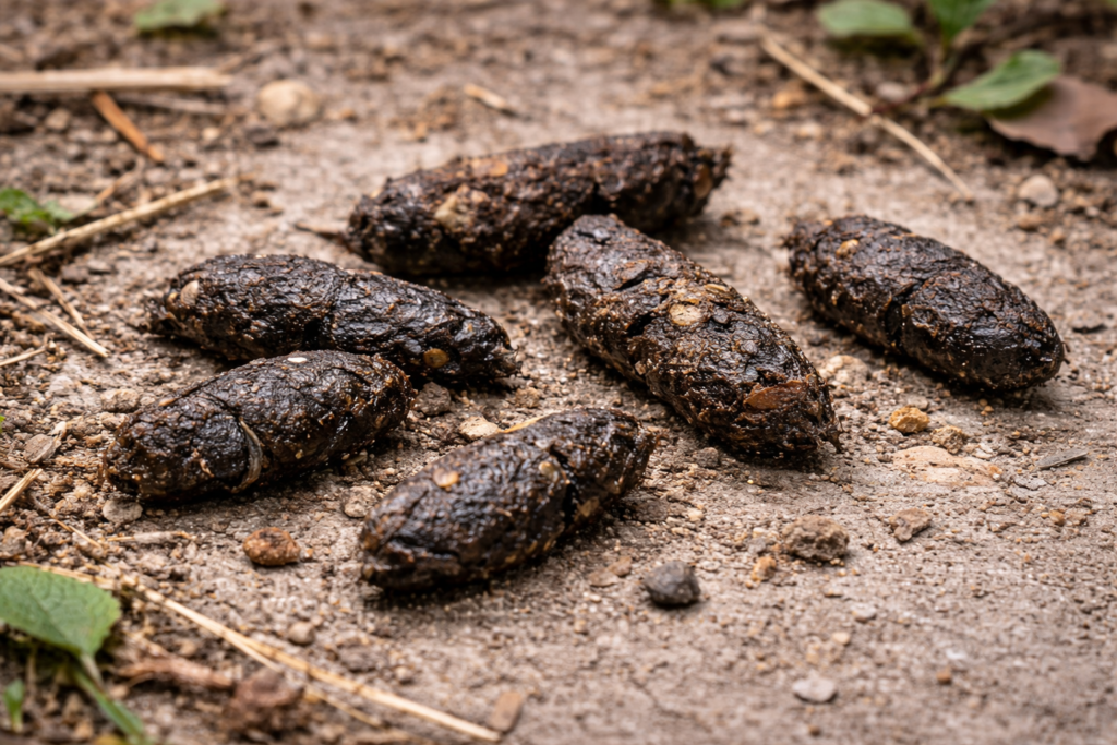 • 形:大きめで量が多いことがある(下痢気味なのもよく見る)・時期により果実の種なども混ざる(食性で変化)